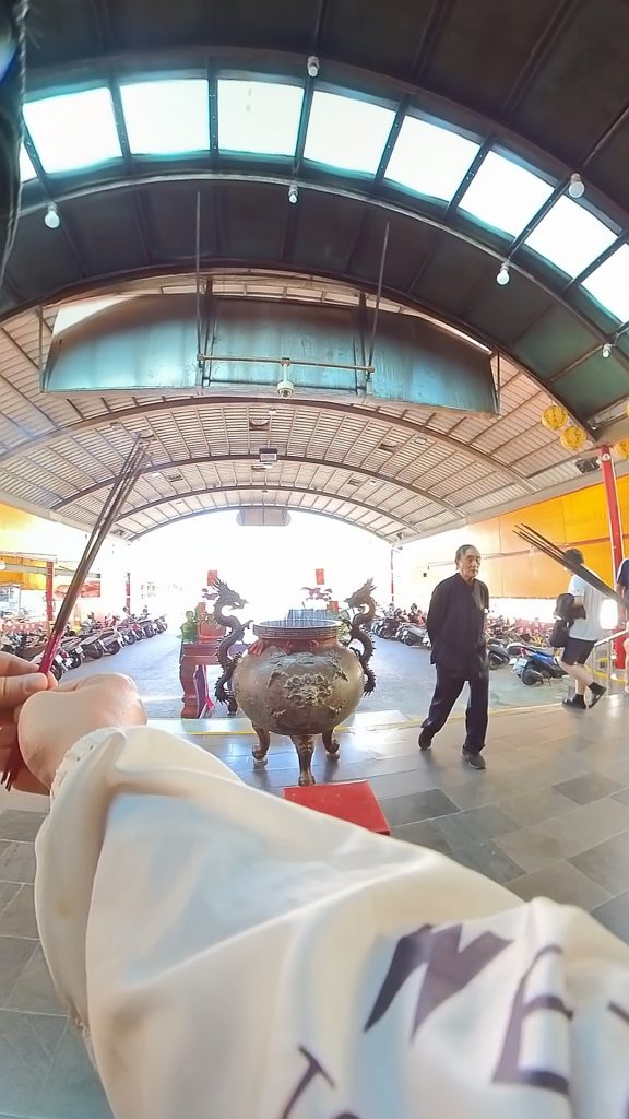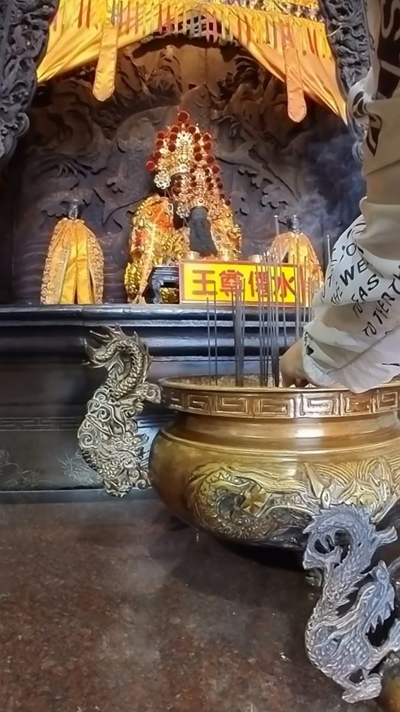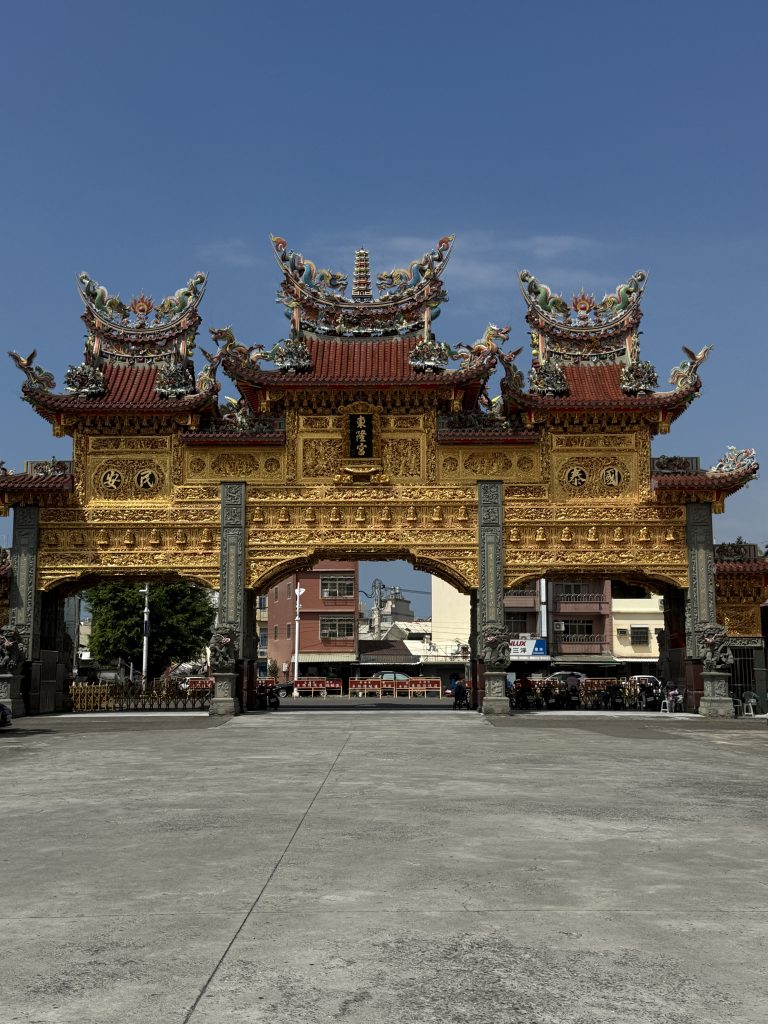 我造訪的那天,天氣晴朗,廟前香煙裊裊、鼓聲隆隆,廟宇建築金碧輝煌,屋脊上滿是細緻的剪黏和彩瓷龍鳳。走進廟裡,香氣混著海風,既莊嚴又溫暖。廟埕的兩側有石獅與大鼓,拍照起來格外壯觀。