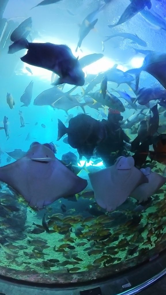 最讓我印象深刻的是那片「海底隧道」,水光流動,遊客的倒影與魚群交錯,靜靜待上幾分鐘就能忘記時間。
